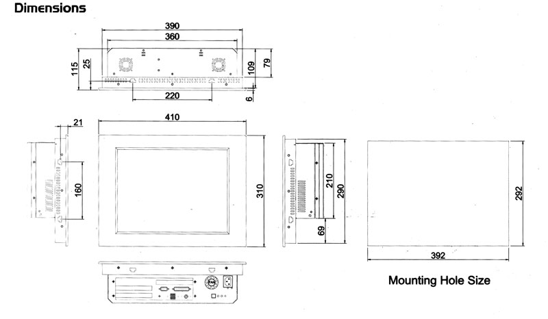 410(W) x 115(D) x 310mm(H) |
