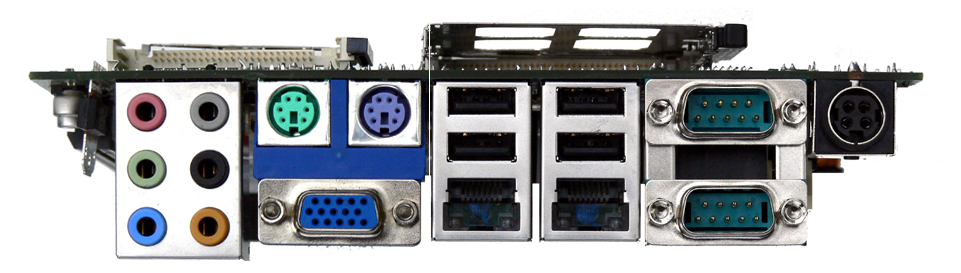 2 x RS232 Serial port, 1 x FDD, 4 x USB 2.0 ports, 1x TV out, 8-bit digital I/O. |