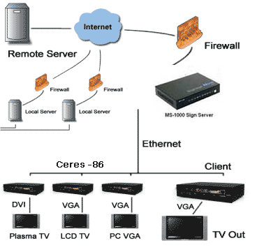 Support VGA1280 x 1024, DVI 720P, 1080i SignageNow broadcast media control (over 300 locations)